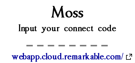 After getting your **connect code** from remarkable, which you can do by clicking on the hyperlink below the prompt, you can type or paste into Moss, it will start attempting a connection instantly.\
